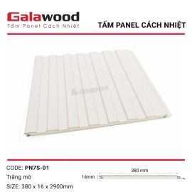 Tấm Panel tôn xốp cách nhiệt PN7S-01 là vật liệu xây dựng cao cấp với cấu trúc 3 lớp: thép mạ Al-Zn, lõi xốp PU và đáy sợi thủy tinh tráng bạc. Màu trắng bề mặt mờ hiện đại giúp công trình vừa đẹp vừa mát. 1. Cấu tạo 3 lớp của tấm Panel PN7S-01 ..
