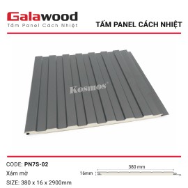 Tấm Panel tôn xốp cách nhiệt PN7S-02 là vật liệu xây dựng cao cấp với cấu trúc 3 lớp: thép mạ Al-Zn, lõi xốp PU và đáy sợi thủy tinh tráng bạc. Màu xám đậm bề mặt mờ hiện đại giúp công trình vừa đẹp vừa mát. 1. Cấu tạo 3 lớp của tấm Panel P..