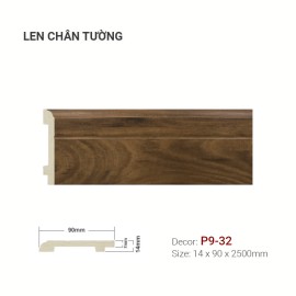 Len Tường nhựa P9-32 Len tường nhựa P9-32 cấu tạo bởi nhựa composite, được sản xuất trên dây chuyền công nghệ của Hàn Quốc là phụ kiện thiết yếu dùng để che khoảng hở giữa sàn gỗ và chân tường. Đặc biệt: sử dụng được trong nhà và ngoài trời, không cần sơn bảo vệ..