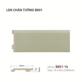 Len tường nhựa B801-16 cấu tạo bởi nhựa composite, được sản xuất trên dây chuyền công nghệ của Hàn Quốc là phụ kiện thiết yếu dùng để che khoảng hở giữa sàn gỗ và chân tường. Đặc biệt: sử dụng được trong nhà và ngoài trời, không cần sơn bảo vệ, dễ dàng vệ ..