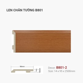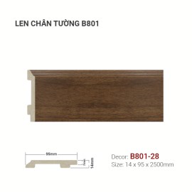 Len tường nhựa B801-13 cấu tạo bởi nhựa composite, được sản xuất trên dây chuyền công nghệ của Hàn Quốc là phụ kiện thiết yếu dùng để che khoảng hở giữa sàn gỗ và chân tường. Đặc biệt: sử dụng được trong nhà và ngoài trời, không cần sơn bảo vệ, dễ dàng vệ ..