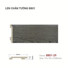 Len tường nhựa B801-29 cấu tạo bởi nhựa composite, được sản xuất trên dây chuyền công nghệ của Hàn Quốc là phụ kiện thiết yếu dùng để che khoảng hở giữa sàn gỗ và chân tường. Đặc biệt: sử dụng được trong nhà và ngoài trời, không cần sơn bảo vệ, dễ dàng vệ ..