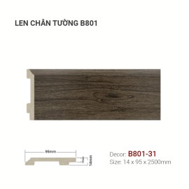 Len tường nhựa B801-31 cấu tạo bởi nhựa composite, được sản xuất trên dây chuyền công nghệ của Hàn Quốc là phụ kiện thiết yếu dùng để che khoảng hở giữa sàn gỗ và chân tường. Đặc biệt: sử dụng được trong nhà và ngoài trời, không cần sơn bảo vệ, dễ dàng vệ ..