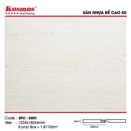 Sàn Nhựa Hèm Khóa Đế Cao Su Kosmos SPC chính hãng tại M.K FULLHOUSE Sàn Nhựa Hèm Khóa Đế Cao Su Kosmos SPC 5001 là dòng sản phẩm sàn nhựa hèm khóa đế cao su. Sản phẩm có độ bền cao, chống trầy xước, chống cháy, chống nước, vân sần chống t..