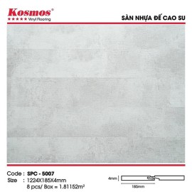 Sàn Nhựa Hèm Khóa Đế Cao Su Kosmos SPC chính hãng tại M.K FULLHOUSE Sàn Nhựa Hèm Khóa Đế Cao Su Kosmos SPC 5007 là dòng sản phẩm sàn nhựa hèm khóa đế cao su. Sản phẩm có độ bền cao, chống trầy xước, chống cháy, chống nước, vân sần chống t..