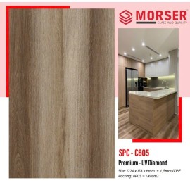 Sàn Nhựa Hèm Khóa Morser SPC chính hãng tại M.K FULLHOUSE Sàn Nhựa Hèm Khóa Morser SPC-C605 là dòng sản phẩm sàn nhựa hèm khóa đế cao su. Sản phẩm có độ bền cao, chống trầy xước, chống cháy, chống nước, vân sần chống trơn trượt an to&agra..